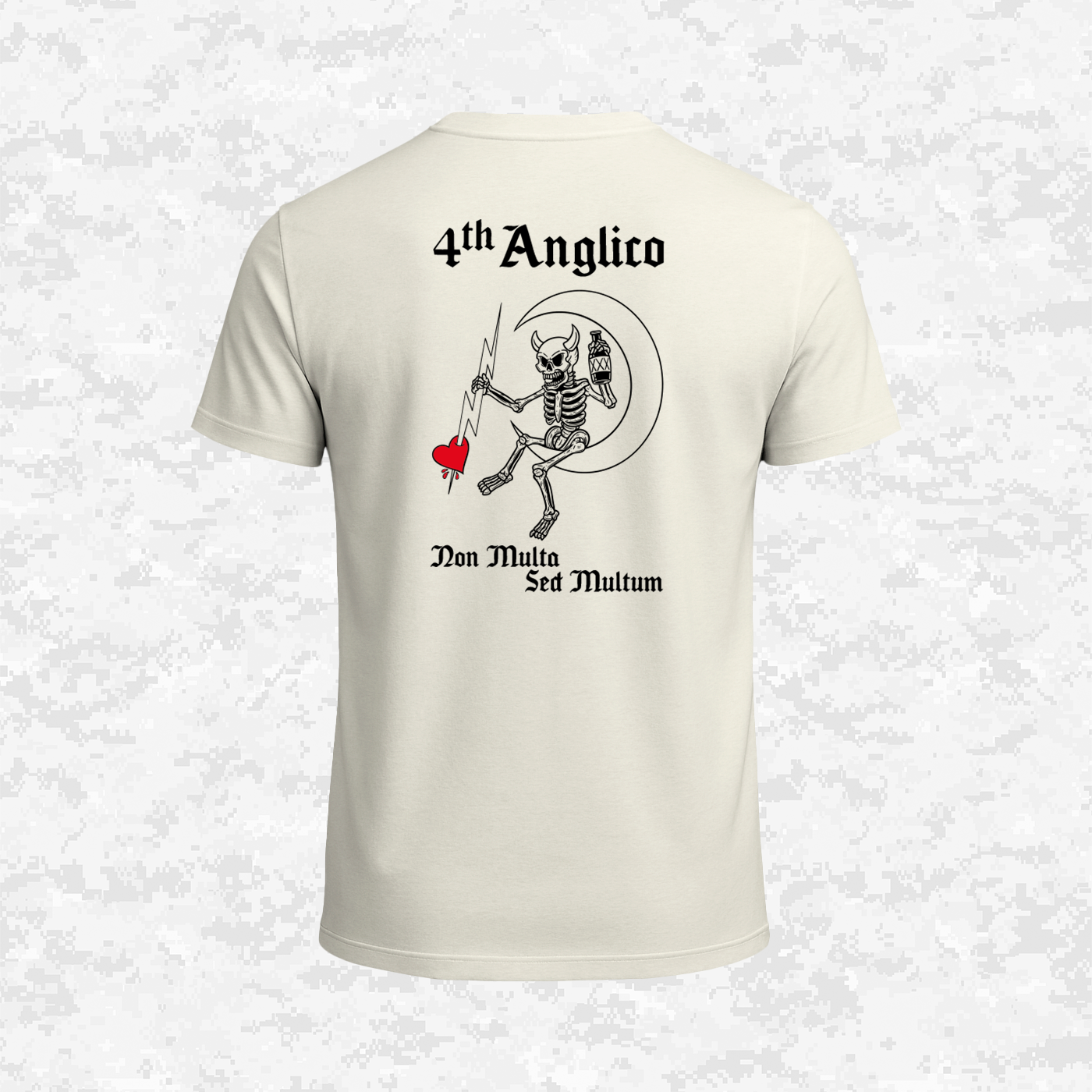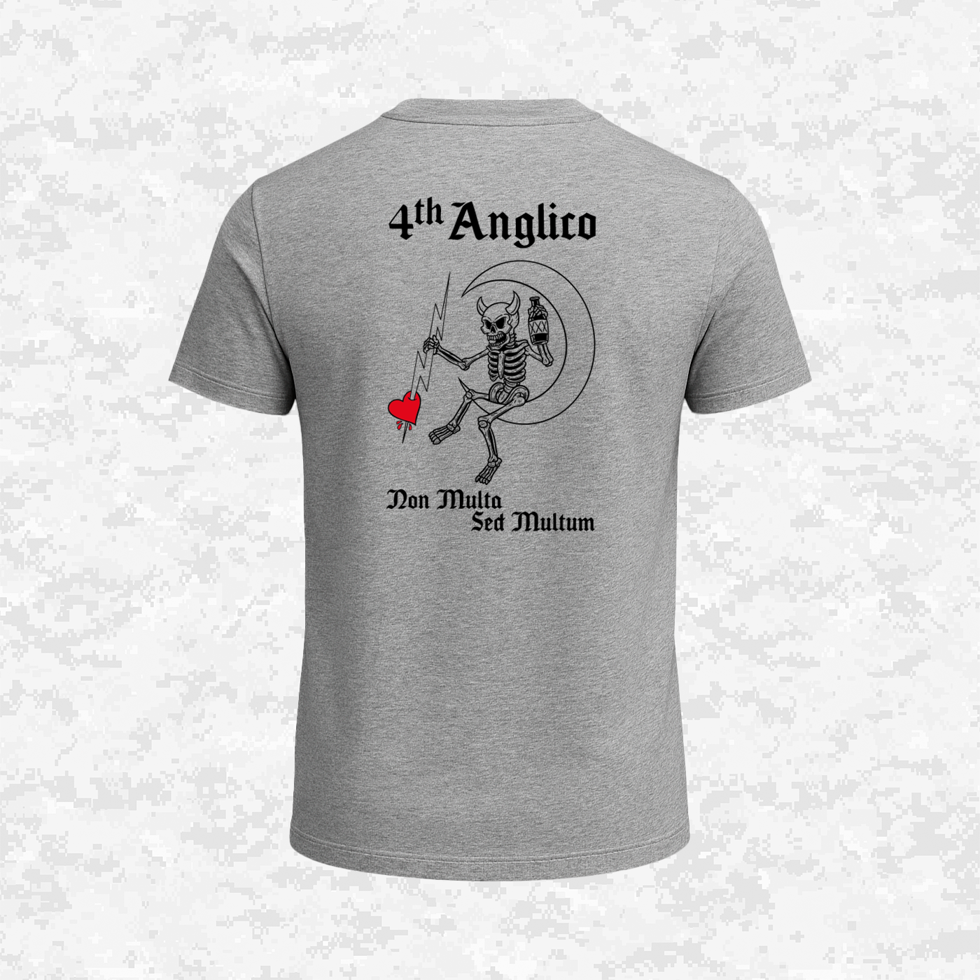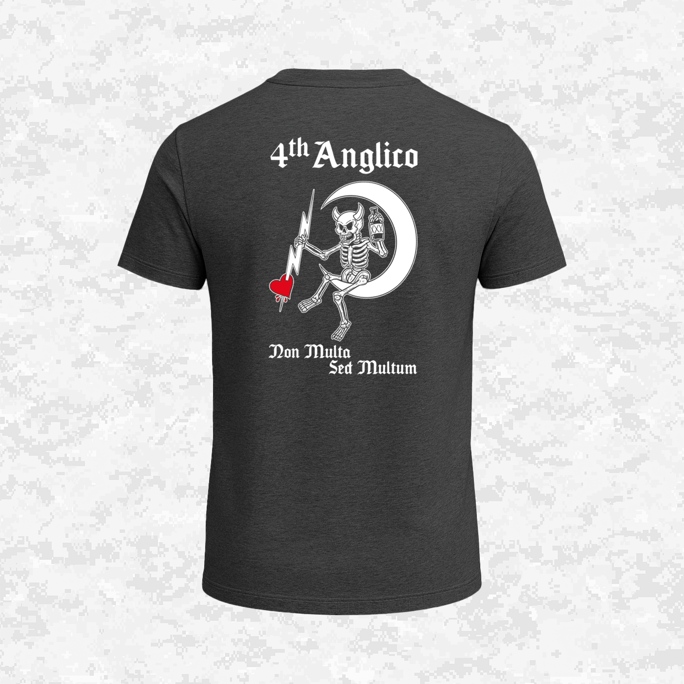 Fun 4th Anglico design, featuring the famous motto "non multa sed multum" on the back and a fun logo on the front, ideal for those who proudly serve and have served within the 4th Anglico.