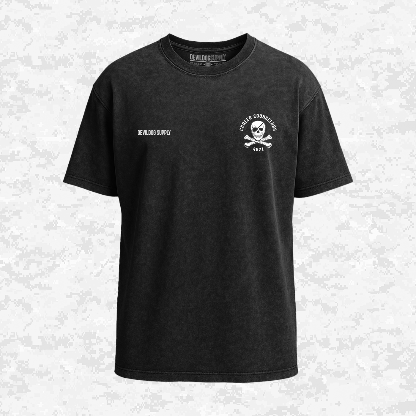 This design captures the satire and dark humor surrounding the re-enlistment process in the Marine Corps. With the pirate flag proclaiming "DON'T RESIST REENLIST" in the background, the design mocks the relentless pressure the 4821 MOS applies to keep Marines in service, embodying the inside joke that the obligation never truly ends.
