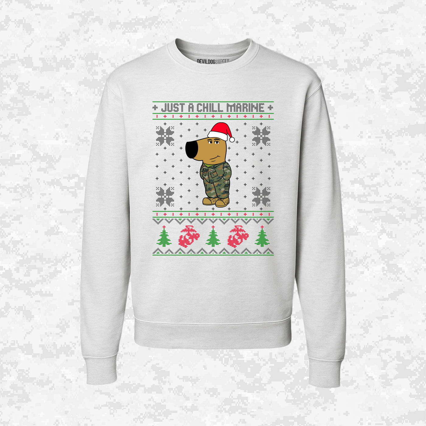 The Marine Corps' most relaxed version for the season. This design features the iconic bulldog in tactical uniform, wearing a Santa hat, set against a background of holiday motifs and EGA emblems. It's the perfect gear for well-earned downtime, proving that even Marines deserve to "just chill."